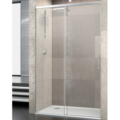 FRONTALE DUSCHKABINE (aus 1 festen Tür + 1 Gleittür).